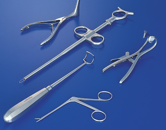 顯微耳剪、耳息肉剪、顯微耳鉗、中耳息肉鉗、耳刮匙、扁桃體刀、鼻粘膜刀、鼻骨鑿、鼻剪、耳異物鉗、鼻咬切鉗、喉鉗、耳用剝離子、耳用探針、乳突牽開器、鼻取樣鉗、鼻異物鉗、鼻息肉鉗、鼻粘膜鉗、上頜竇咬骨鉗、鼻腔吸引管、鼻中隔咬骨鉗、上頜竇止血鉗、顯微喉剪、扁桃體剪、顯微喉鉗、喉取樣鉗、氣管擴張鉗、海綿鉗、止血鉗、舌鉗、壓舌板、顯微喉鉤、扁桃體夾持鉗